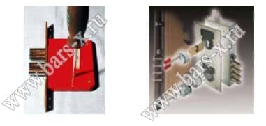 Врезные замки с модулем для ручки аварийного выхода. Эти системы по принципу напоминают предыдущие, но в них, тот элемент, в котором у вышеописанных накладных устройств реализована накладная защелка, полностью заменен на элемент, предназначенный для объединения с полноценными дверными врезными или вкладными замками, в конструкции которых предусмотрен соответствующий модуль.
