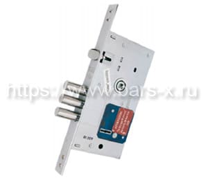 Устанавливается в тяжелые бронированные стальные, металлические двери. Помимо трех стальных ригелей, снабжен защелкой. Секрет замка имеет трехшаговый механизм. Открывание и закрывание смягчает подшипник.