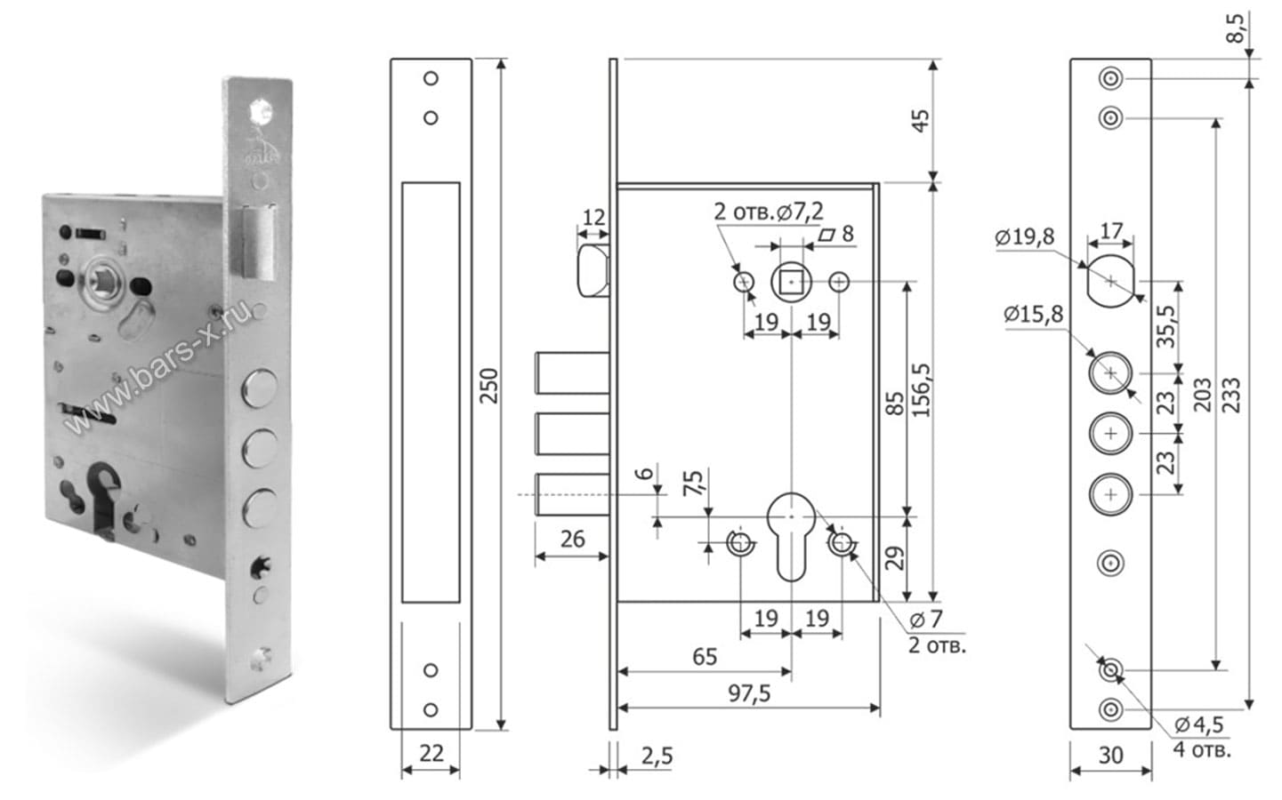 •Тип крепления врезн. замка: лицевая планка.