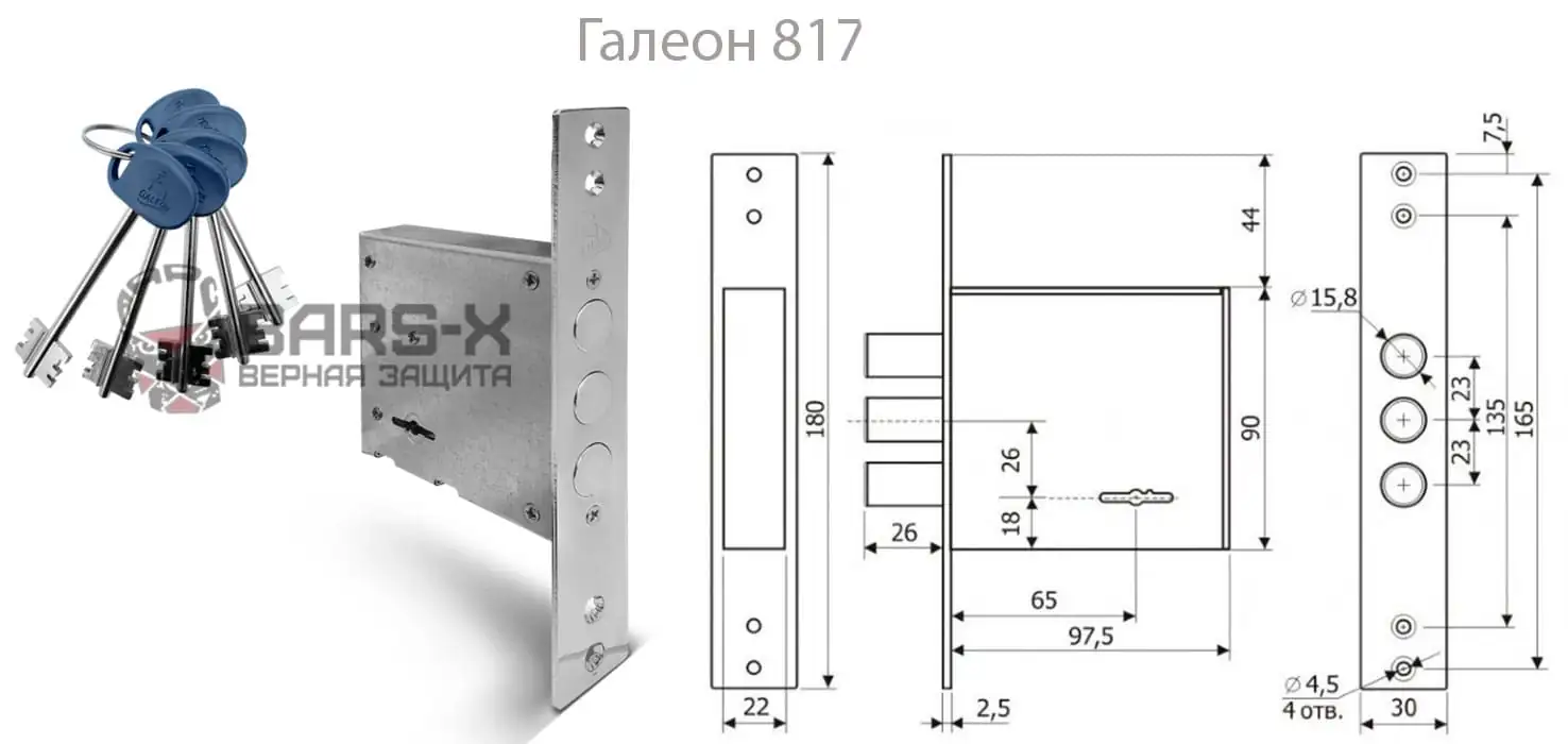 Замок врезной цилиндровый с защелкой. Предназначен для установки в металлические двери, шкафы и сейфы.