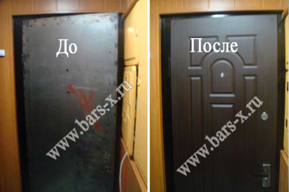 Отделка двери – это образное представление, т.к. всех возможностей и услуг просто не перечесть. Можем сказать с уверенностью только одно фирма «Барс-Х» - лицензированная сервисная служба, которая может все с преобразованием внешнего вида двери в кротчайшие сроки, отвечая за качество материалов и выполняемую работу: