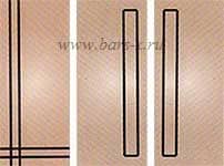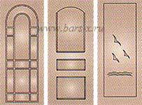 - Декоративные панели - установка накладок на дверь из разного материала, таких как МДФ, шпон, ламинат, пластик, постформинг, крашенные панели, массив, корабельная фанера (авиационный материал с максимальной износостойкостью к климатическим условиям). Также все материалы могут изготавливаться как в гладком варианте исполнения, так и с рисунком, филенкой, раскладкой, со вставками массива или пластика, толщина накладки от 4 до 18 мм. Т.е. в компании «Барс-Х» любой человек может воплотить свою фантазию в реальность. У нас для этого есть все! И Мы не пугаемся изготовлению панели по эскизу заказчика. Мы представляем Московские цеха деревообработки, которые имеет больше возможностей, чем цех любого мелкого завода, продукция которого может удовлетворить любые потребности заказчика. Деревообрабатывающий цех ориентирован не только на выполнение ранее предложенных материалов для обивки дверей, но и на выполнение эксклюзивных заказов. Это могут быть различные массивы разных пород дерева (дуб, ясень, красное дерево, венге, като, орех и множество других…). Можно комбинировать различные породы дерева на одной панели, оформлять рисунок фигурными раскладками любой формы, делать панели массива со вставками шпона и наоборот, делать вставки из цветного стекла или тонированного зеркала, искусственно придать панели «антикварный» вид и т.п. - в общем, ограничений почти нет.