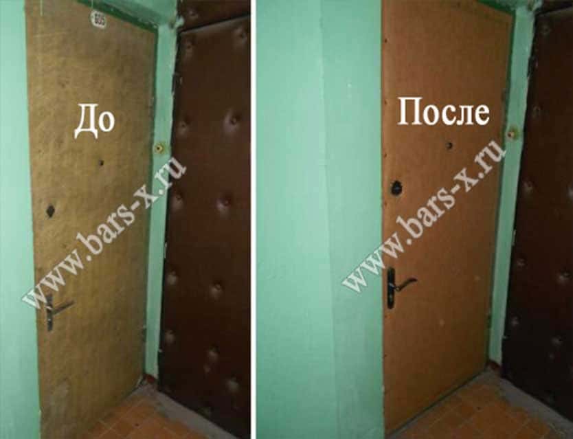 Обратитесь в компанию ООО «Барс-Х» и ваша старая дверь станет лучше новой! Мы поможем и звуко-тепло изолировать, облагородить, утеплить и защитить вашу дверь. Все, что пожелаете! Звуко - шумо изоляция не мало связана как с обивкой двери, так и с конструкцией двери, наполнением двери! Стандартная обивка двери не всегда помогает защитить Ваше помещение от проникновения сквозняков и посторонних запахов с лестничной площадки или улицы. Основным способом защиты является изготовление защитного валика по периметру дверной коробки, утепление коробки и дверного полотна, при правильном исполнении, поможет решить эти две проблемы. Но Вы помимо этого, при обивке железных дверей или дверей из дерева, можете заказать дополнительный слой поролона и теплоизоляционного материала на каждую сторону двери, это создаст существенную преграду для выхода тепла из помещения. Мы выполняем обивку входных дверей и оклейку металлических дверей так, чтобы Вам было тепло и красиво!