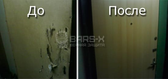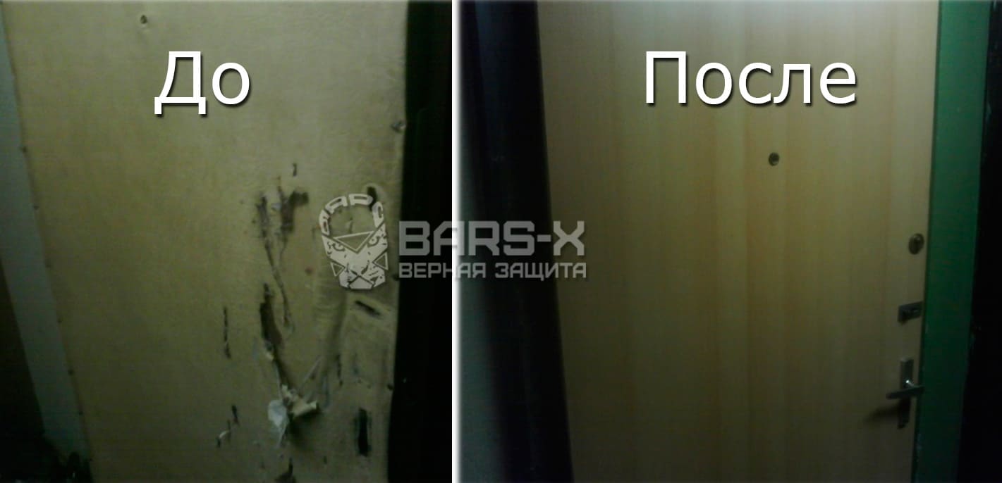 Установка дверных замков, установка панели – благодаря всему этому старая входная дверь выглядит теперь не хуже новой. Качественный и современный замок обеспечивает безопасность жильцов, а стильная панель, выполненная в классическом светлом оттенке, сделала полотно более привлекательным. После восстановления металлическая входная дверь стала полноценным элементом интерьера помещения!