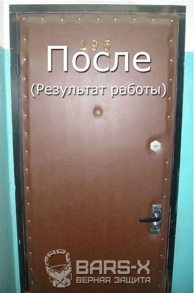 Не забывайте! Вы можете самостоятельно попытаться перетянуть входную дверь (металлическую или деревянную), но целесообразнее доверить работу квалифицированным и сертифицированным мастерам компании «Барс-Х»!