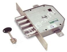 Одни из самых распространенных моделей замков, установленных на бюджетные двери отечественного производства, как на деревянные, так и на металлические. Замки качественные, надежны в работе, но не высокой степени секретности. Так называемые замки легкой серии, которые закрываются на два оборота и блокируются тремя выдвижными ригелями (штырями). Устанавливаются как, дополнительные(верхние) замки (без ручек) на двери облегченной конструкции.